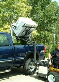 The Walker Hi-Dump raises up 67 inches and dumps collected grass into a truck or trailer. Powered by a 12-volt electric/hydraulic system, the lifting and dumping functions work independently and are controlled by two toggle switches by the operator's seat.