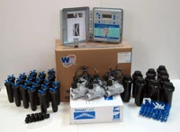 Features a SmartLine modular controller, plug-in module, rotors with nozzle racks and key, spray heads with nozzles, a choice of valves and optional weather station
