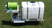 Westheffer Co. offers a Commercial Quality 200 Gallon Skid Sprayer which comes standard with a Hypro D-30 diaphragm pump, 9.5 gpm or 550 psi maximum, 5.5 hp recoil Honda engine, Hannay electric hose reel, Green Garde 600 psi hose and a Chemlawn gun.