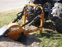 Depth control cylinder allows for a raised height of 16 inches above ground to clear the top of most stumps
